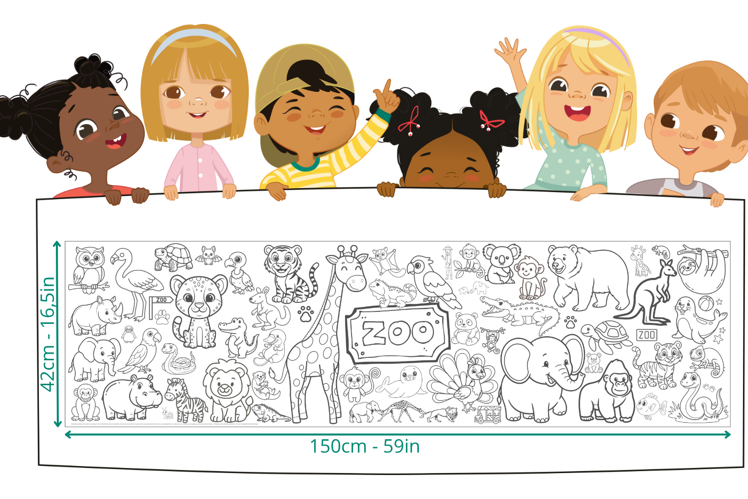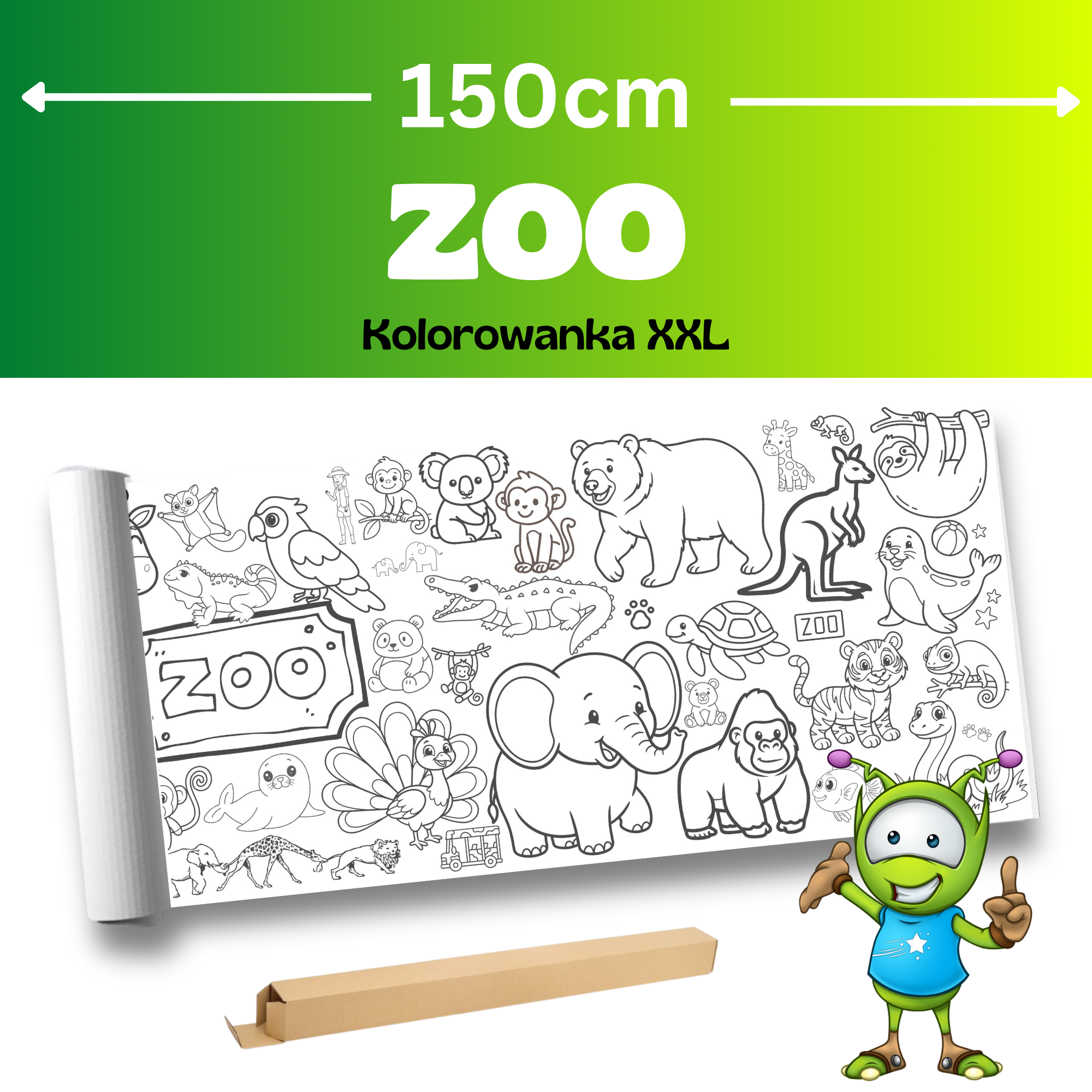 Kolorowanka XXL ZOO to ogromna, rozwijana kolorowanka o długości 150 cm, pełna uroczych zwierząt i detali, które wciągną dziecko na długie godziny.